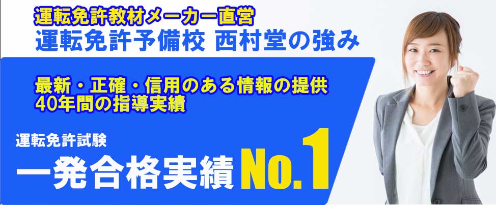 運転免許予備校西村堂の受講者は1回の受講で80%以上の方が合格されております。